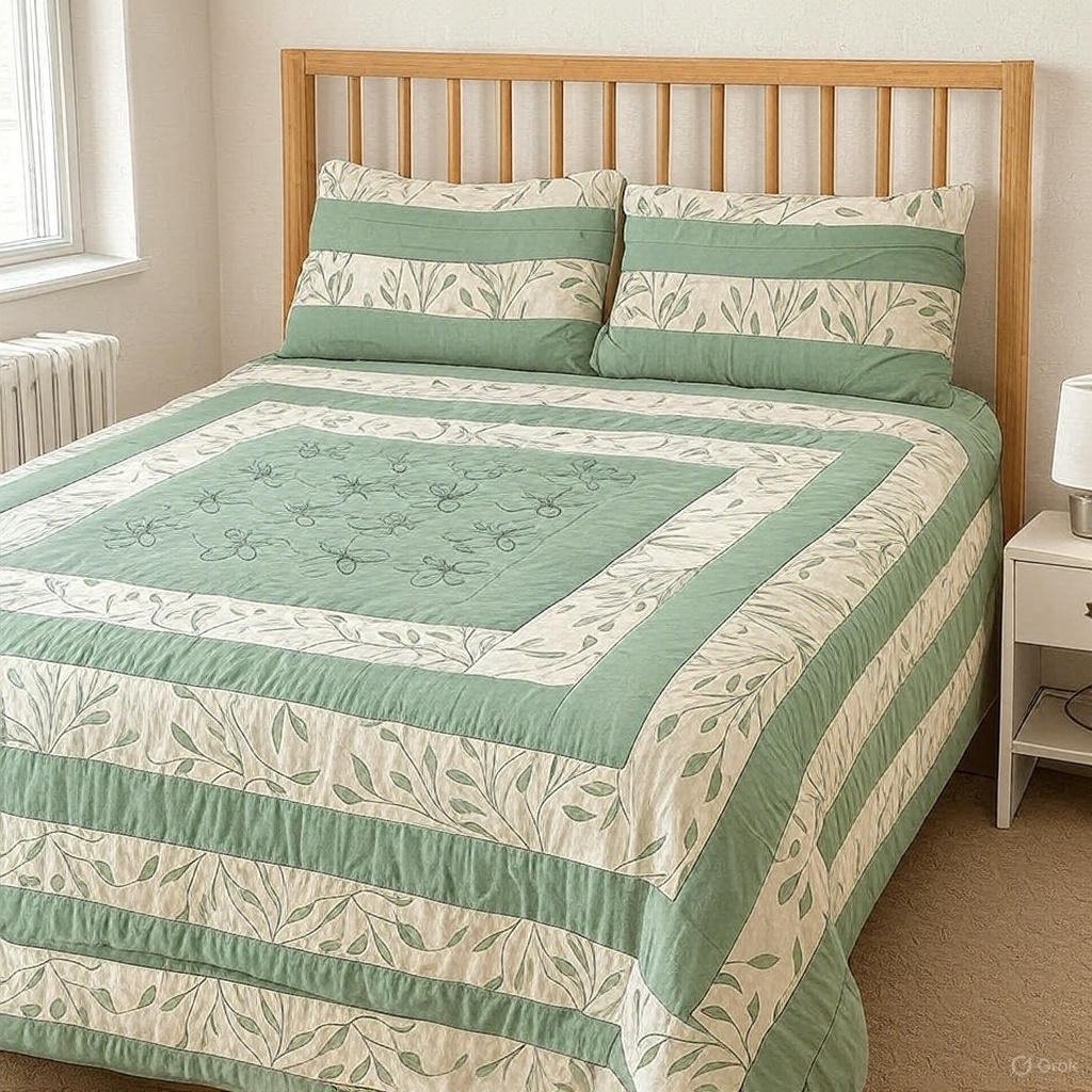 Crafted from 100% pure cotton patchwork, this design beautifully blends sea green and white tones, creating a calm, coastal vibe that soothes your senses and elevates your space.